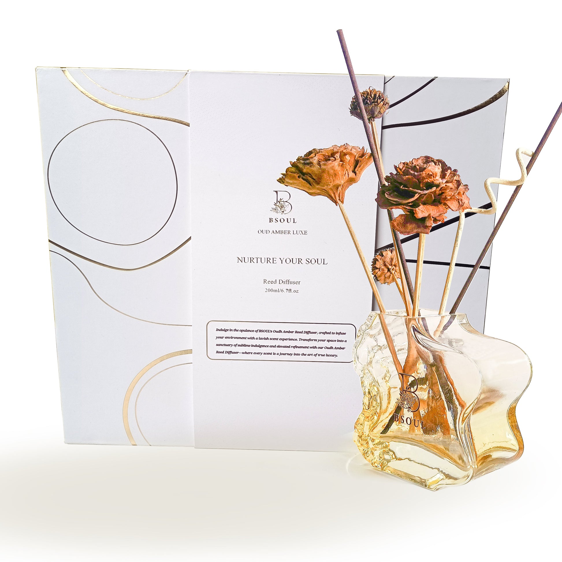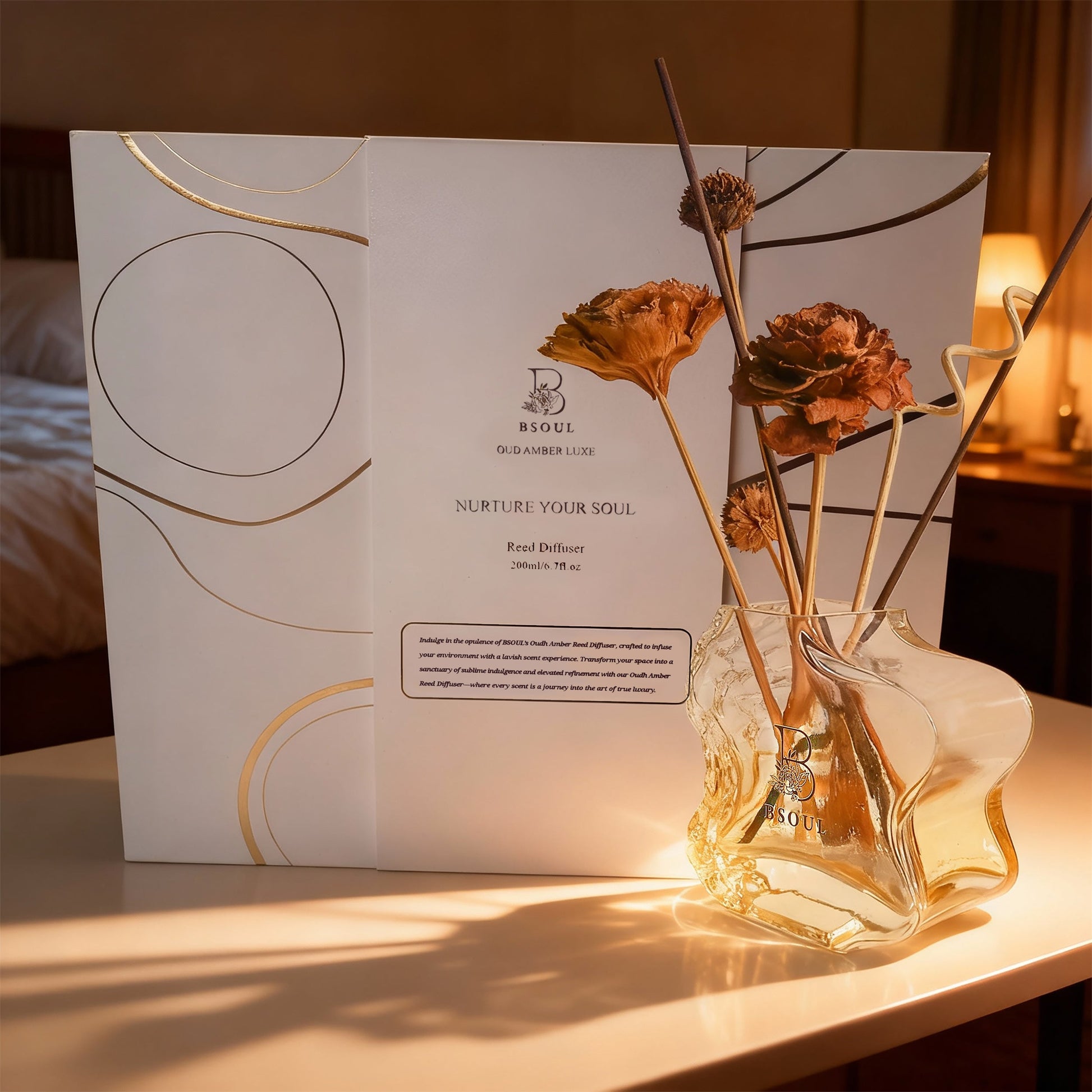 Indulge in the opulence of Bsoul’S oudh amber reed diffuser, Crafted to infuse your environment with a lavish scent experience. The essence of rich amber melds seamlessly with exotic notes of oudh - a rare and precious woody profile known for its rich, Complex aroma. Transform your space into a sanctuary of sublime indulgence and elevated refinement with our oudh amber reed diffuser—where every scent is a journey into the Art of true luxury.
